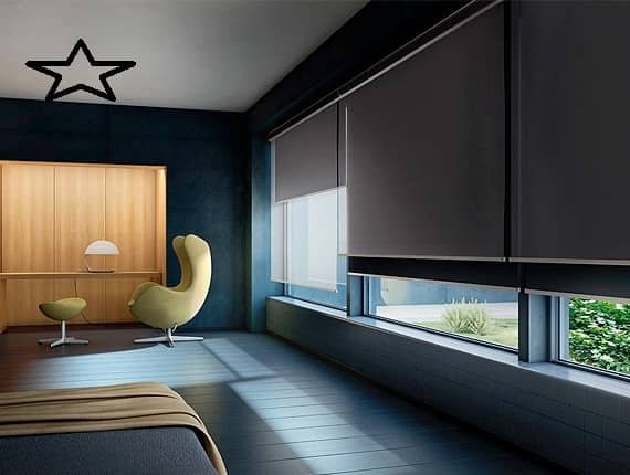 modelos de cortinas roller black outs medidas estandar con tejido resistente al calor, ideal para tus estancias muy expuestas o tus oficinas. La lona microventilada permite la circulación del aire.